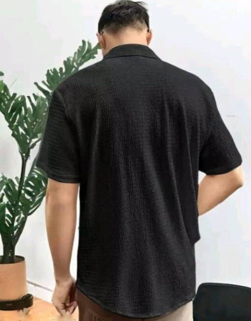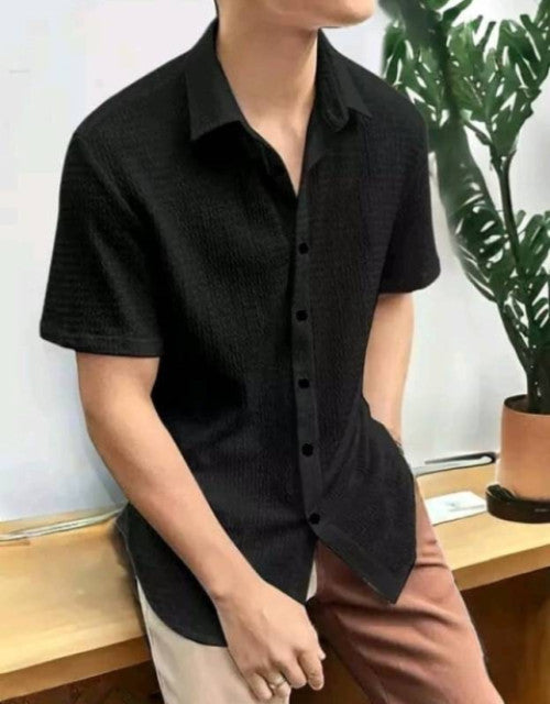 Men Regular Fit Self Design Spread Collar Casual Shirt