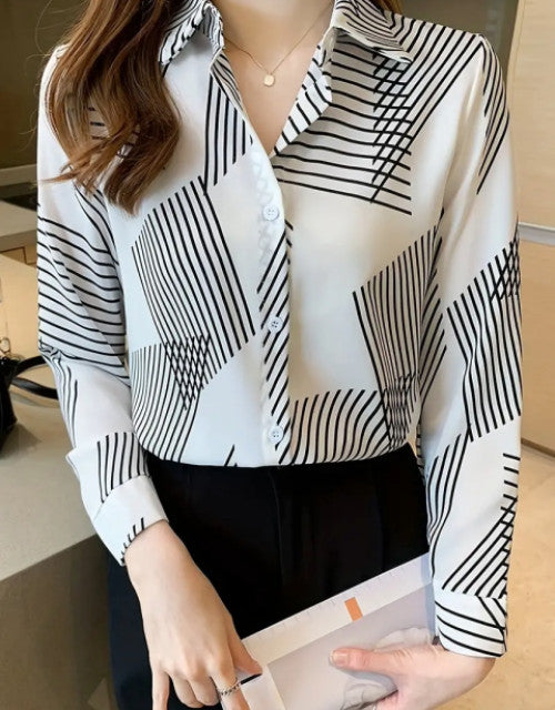 Women's Printed Cotton Silk Long Sleeve Collar Neck Tunic Shirt